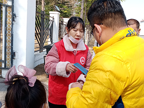 志愿者積極幫助行動(dòng)困難游客,助力圓夢(mèng)大美長(zhǎng)白。