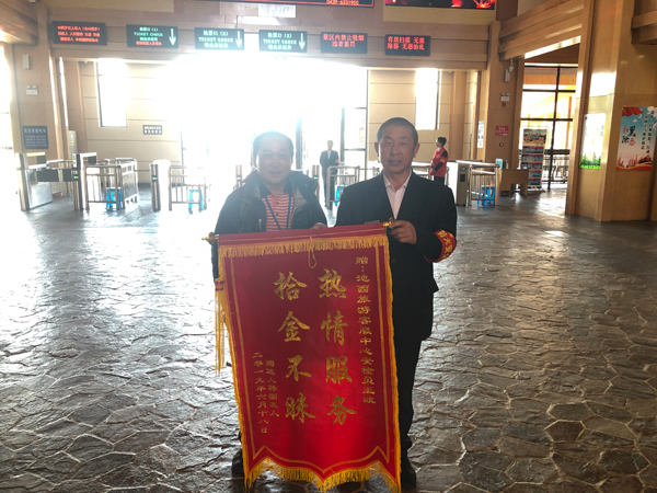 6月24日,池西游客服務(wù)中心副經(jīng)理王金鵬又接待了一位前來贈送錦旗的游客。因?yàn)榘矙z員王波在6月13日,拾到一部三星手機(jī),并及時上交,通過多方了解才知道,失主是一位韓國游客,手機(jī)的及時歸還也為該游客省去了很多不必要的麻煩。所以,委托旅行社贈送錦旗一面,稱贊王波拾金不昧的精神。同時這也是這個月里池西游客服務(wù)中心第二次有游客贈送錦旗,這是對景區(qū)員工優(yōu)質(zhì)服務(wù)高度的認(rèn)可與贊揚(yáng)。