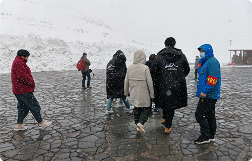 演練模擬長白山西景區主峰突降暴雪,氣溫驟降,造成主峰公路部分路段結冰,主峰停車場運營車輛無法正常運營,大量游客滯留在停車場候車區。接到通知后,運營三部迅速啟動了《景區運營道路應急處置預案》。演練從逐級上報、安撫游客、道路防滑、關閉山門以及引導游客步行至安全地點,換乘救援車輛,僅用了2個小時就圓滿的完成了演練任務。
