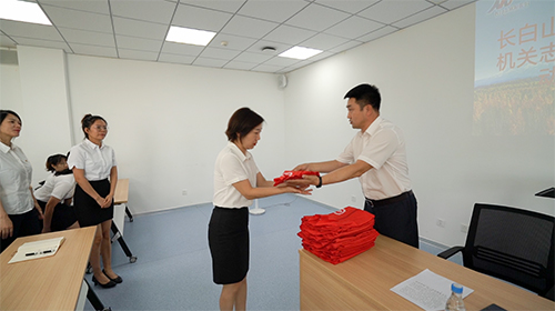 會議強調,2021年旺季志愿服務工作正式拉開帷幕,要深刻認識目的意義,認真貫徹公司安全管理及服務提升工作會議精神,堅持高質量、高標準投身到一線服務工作中,展現公司的整體性、執行力,奮力打贏疫后長白山旅游翻身戰。要規范流程高效工作,與景區做好最充分對接,深化細化志愿服務工作流程,加強人員崗位的針對性、適配性,不斷提高游客體驗的舒適度,用細心的服務彌補旺季的不足。要安全平穩做好服務,把受到的誤解和委屈看作是對工作的建議和批評,以旅游從業者的主角意識,化為更強的工作動力,積極引導建立正面輿情,讓每一個游客都能成為長白山品牌的傳播者,同時做好防暑降溫工作,保證個人健康安全。會議最后副總經理仇永光向志愿服務代表授發象征奉獻、友愛、互助、進步志愿服務精神的“紅馬甲”。