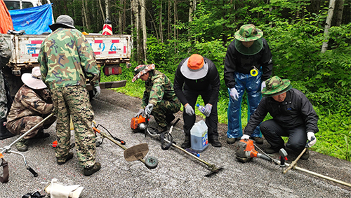每年的6、7月份,都能在長白山的西景區(qū)和南景區(qū)看到這樣的一支隊伍。他們身穿迷彩服裝,手持割草機械,忙碌的在公路兩側和停車場清割野草,他們就是公司景區(qū)運營三部的“割草小分隊”。