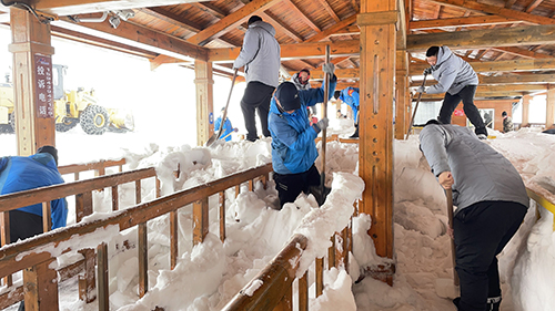 4月8日,長白山旅游股份有限公司景區運營三部組建清雪突擊專班,“全覆蓋”“地毯式”清理西景區候車回廊積雪,備戰“五一”假期旅游小高峰。